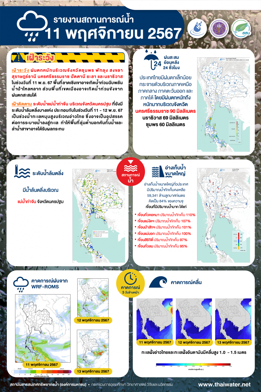 รายงานสถานการณ์น้ำ วันที่ 11 พฤศจิกายน 2567