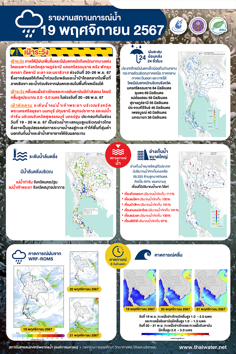 รายงานสถานการณ์น้ำ วันที่ 19 พฤศจิกายน 2567