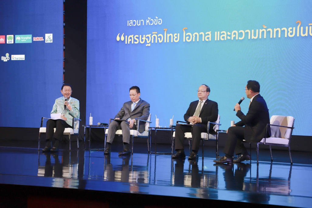 วันนี้ (30 ต.ค.67) สมาคมผู้สื่อข่าวเศรษฐกิจ ร่วมกับคณะกรรมการร่วมภาคเอกชน 3 สถาบัน (กกร.) มหาวิทยาลัยหอการค้าไทย และ สำนักงานคณะกรรมการนโยบายรัฐวิสาหกิจ (สคร.) จัดงานประกาศรางวัลสุดยอดผู้นำองค์กรภาคเอกชน (สุดยอดซีอีโอ) ประจำปี 2567 โดยภายในงานได้มีเสวนาหัวข้อ “เศรษฐกิจไทย โอกาส และความท้าทายในปี 2568” จาก 3 กูรูเศรษฐกิจ ได้แก่ นายผยง ศรีวณิช ประธานสมาคมธนาคารไทย, นายเกรียงไกร เธียรนุกุล ประธานสภาอุตสาหกรรมแห่งประเทศไทย และ นายสนั่น อังอุบลกุล ประธานกรรมการหอการค้าไทย และสภาหอการค้าแห่งประเทศไทย