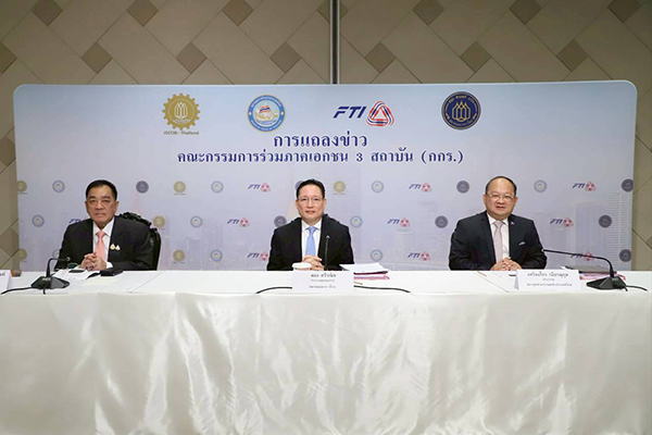 เมื่อวันที่ 3 กันยายน 2568 นายผยง ศรีวณิช ประธานกรรมการสมาคมธนาคารไทย เป็นประธานการประชุมคณะกรรมการร่วมภาคเอกชน 3 สถาบัน (กกร.) นายเกรียงไกร เธียรนุกุล ประธานสภาอุตสาหกรรมแห่งประเทศไทยและ นายพจน์ อร่ามวัฒนานนท์ ประธานสภาหอการค้าแห่งประเทศไทย ร่วมแถลงข่าว โดยที่ประชุมกล่าวถึง