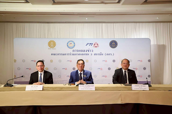 เมื่อวันที่ 1 ตุลาคม 2568 นายพจน์ อร่ามวัฒนานนท์ ประธานกรรมการหอการค้าไทยและสภาหอการค้าแห่งประเทศไทย เป็นประธานการประชุมคณะกรรมการร่วมภาคเอกชน 3 สถาบัน (กกร.) นายผยง ศรีวณิช ประธานกรรมการสมาคมธนาคารไทยและ นายเกรียงไกร เธียรนุกุล ประธานสภาอุตสาหกรรมแห่งประเทศไทย ร่วมแถลงข่าว โดยที่ประชุมกล่าวถึง
