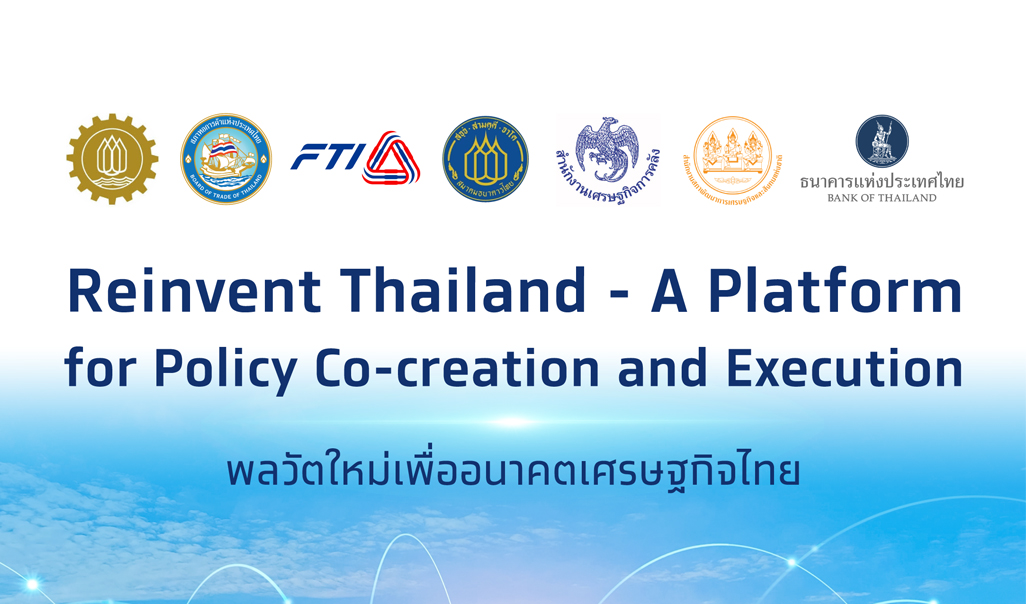 Reinvent Thailand เป็น platform ที่ผนึกความร่วมมือระหว่างภาคเอกชน ภาคการเงิน และภาครัฐในการปรับโครงสร้างเศรษฐกิจและสร้างพลวัตใหม่สู่การเติบโตอย่างยั่งยืน โดยมีภาคเอกชนเป็นแกนหลักในการขับเคลื่อน ภาครัฐสนับสนุนและสร้างสภาพแวดล้อมที่เอื้อต่อการปรับตัวภาคการเงินช่วยจัดสรรทรัพยากรอย่างมีประสิทธิภาพ